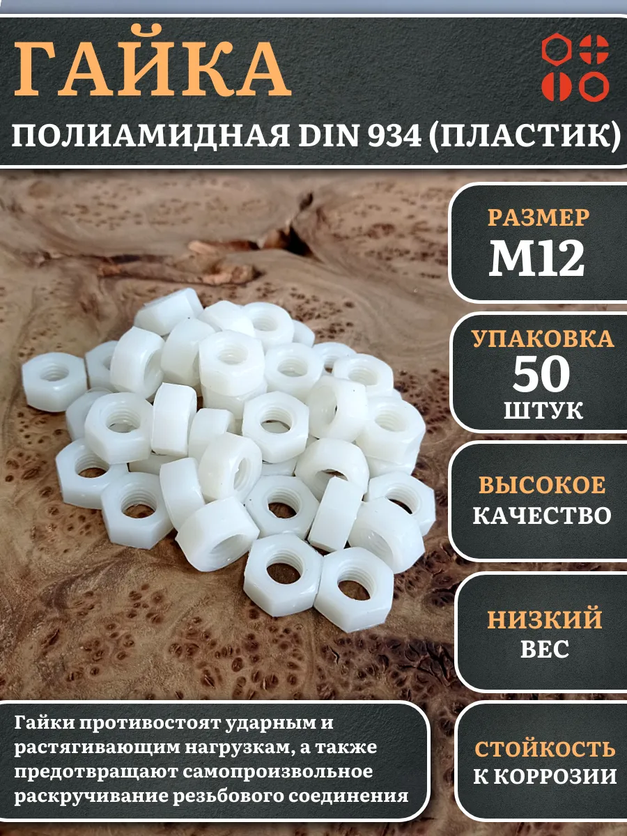 Гайка полиамидная М12 DIN934 (пластик), 50 шт.