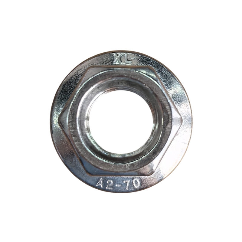 Гайка с фланцем это обычная шестигранная гайка в нижней части которой выполнено уширение (буртик) с насечками или без них. Применение гаек с фланцем значительно ускоряет процесс сборки, поскольку не требуется время на подкладывание шайбы. Фланец по диаметру больше гайки. Фланцевые гайки находят широкое применение в автомобилестроении, при производстве бытовых инструментов и техники, оборудования для пищевой, химической промышленности. Крепеж изготавливается из нержавейки А2 или А4, могут подвергнуть газотермическому цинкованию.