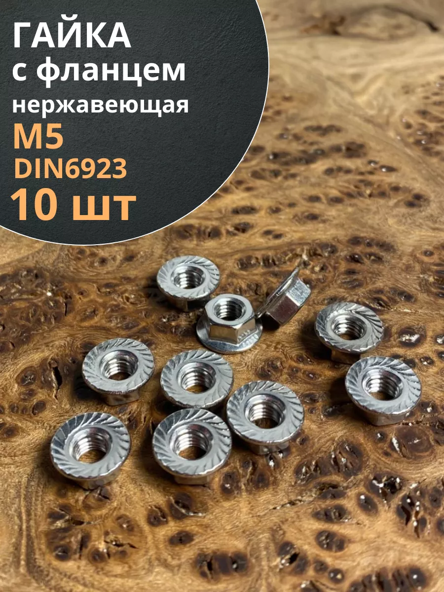 Гайка с фланцем нержавеющая М5 DIN 6923 (10 шт.)