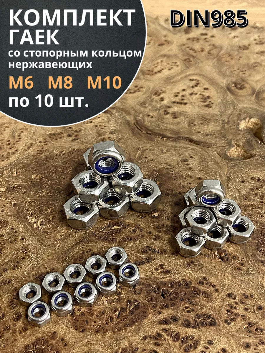 Гайка со стоп кольцом М6,8,10 нержавеющая (набор по 10шт)