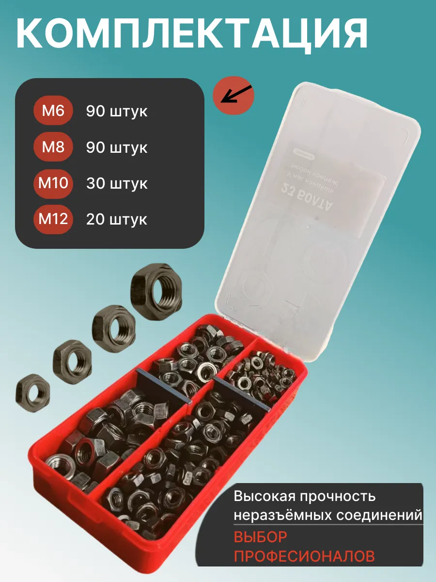 Гайки приварные DIN929 М6,8,10,12 в органайзере НАБОР 1