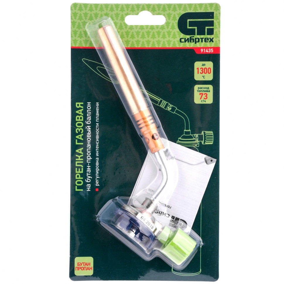 Горелка газовая Сибртех 91435 с диаметром сопла 12 мм предназначена для установки на пропан-бутановый баллон. Она используется для нагрева труб и различных деталей, пайки, розжига огня без химических средств. Горелка будет полезна дома, в гараже, на даче или пикнике. Температура пламени достигает 1300 градусов, что позволяет успешно решать поставленные задачи. Интенсивность пламени можно менять благодаря регулировке подачи газа. Удлиненное сопло обеспечивает стабильность пламени. Цанговое соединение позволяет быстро установить горелку практически на любой баллон с газом (пропан-бутан).