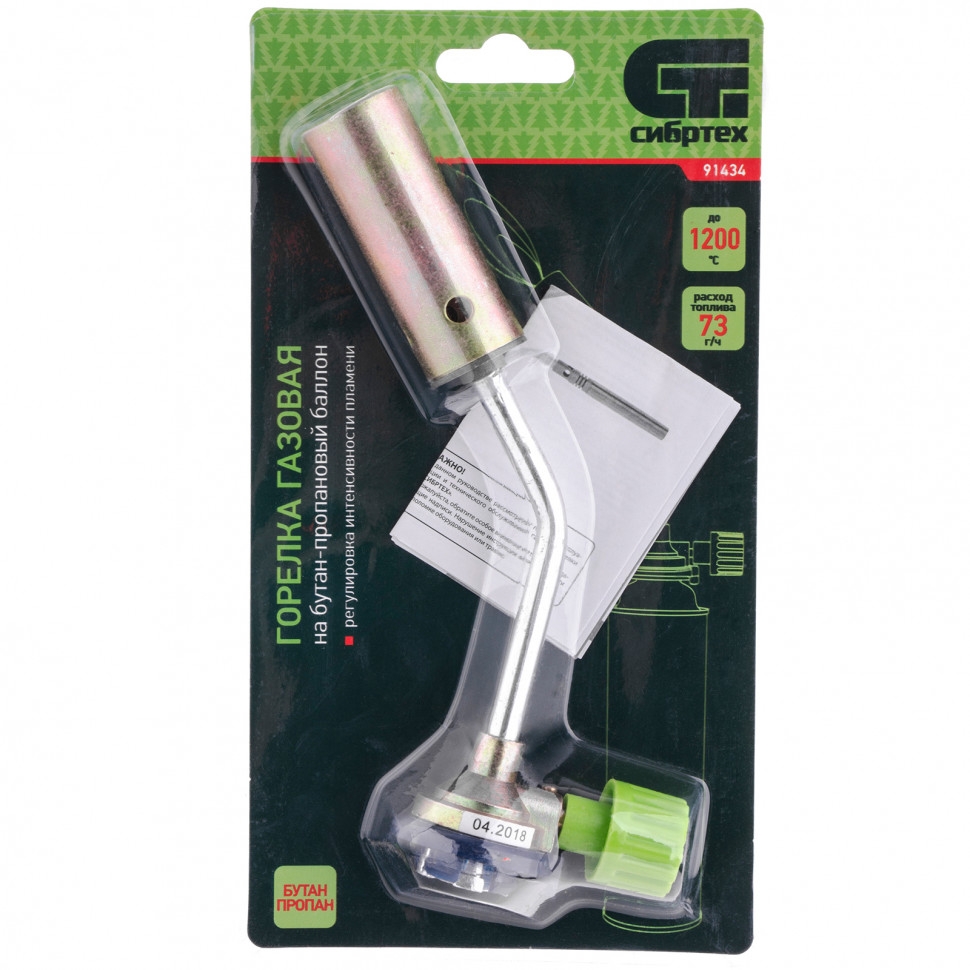 Горелка газовая Сибртех 91434 с диаметром сопла 25 мм предназначена для установки на пропан-бутановый баллон. Она используется для нагрева труб и различных деталей, пайки, розжига огня без химических средств. Горелка будет полезна дома, в гараже, на даче или пикнике. Температура пламени достигает 1200 градусов, что позволяет успешно решать поставленные задачи. Интенсивность пламени можно менять благодаря регулировке подачи газа. Диаметр сопла увеличен до 25 мм, поэтому горелка способна нагреть большую площадь. Цанговое соединение позволяет быстро установить горелку практически на любой баллон с газом (пропан-бутан).