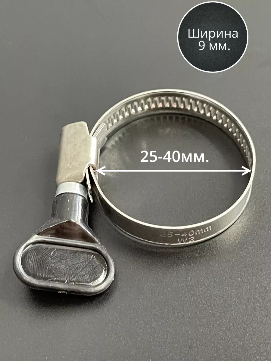Хомут червячный 25-40 с барашком металлический, 5 шт.