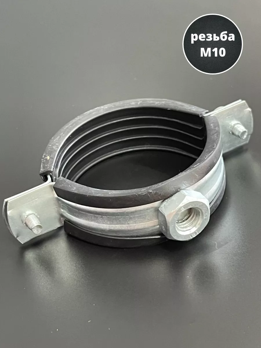 Хомут изготавливается из стали, прокладка - из высококачественной резины. Все металлические детали в обязательном порядке оцинковываются. С помощью трубного хомута трубы могут фиксироваться на полу, стенах или потолке. Данный вид хомута предназначен для надежного крепежа трубопроводов. Используется в сантехническом деле. Пользуется большой популярностью, за счет гарантии надежной фиксации. Материал основания: древесина, металл, бетон, кирпич