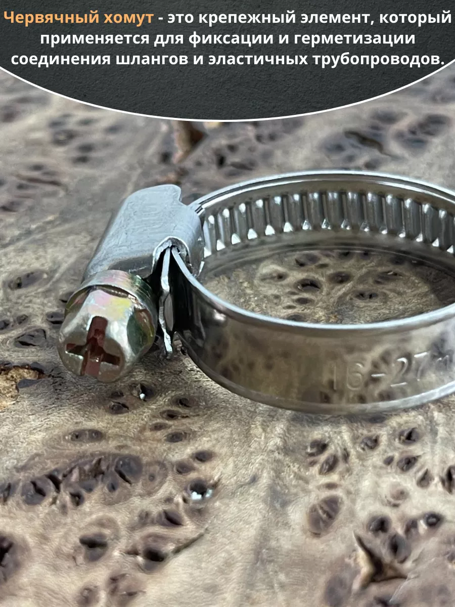 Хомут червячный используется для соединения, крепления или фиксации жестких и гибких трубопроводов, шлангов и патрубков. Изготавливается из стали в виде ленты со специальным замком. Одна половина ленты гладкая, а вторая рифленая, что гарантирует надежную фиксацию. Срок службы данного изделия напрямую зависит от правильного выбора соединения и степени подвижности.