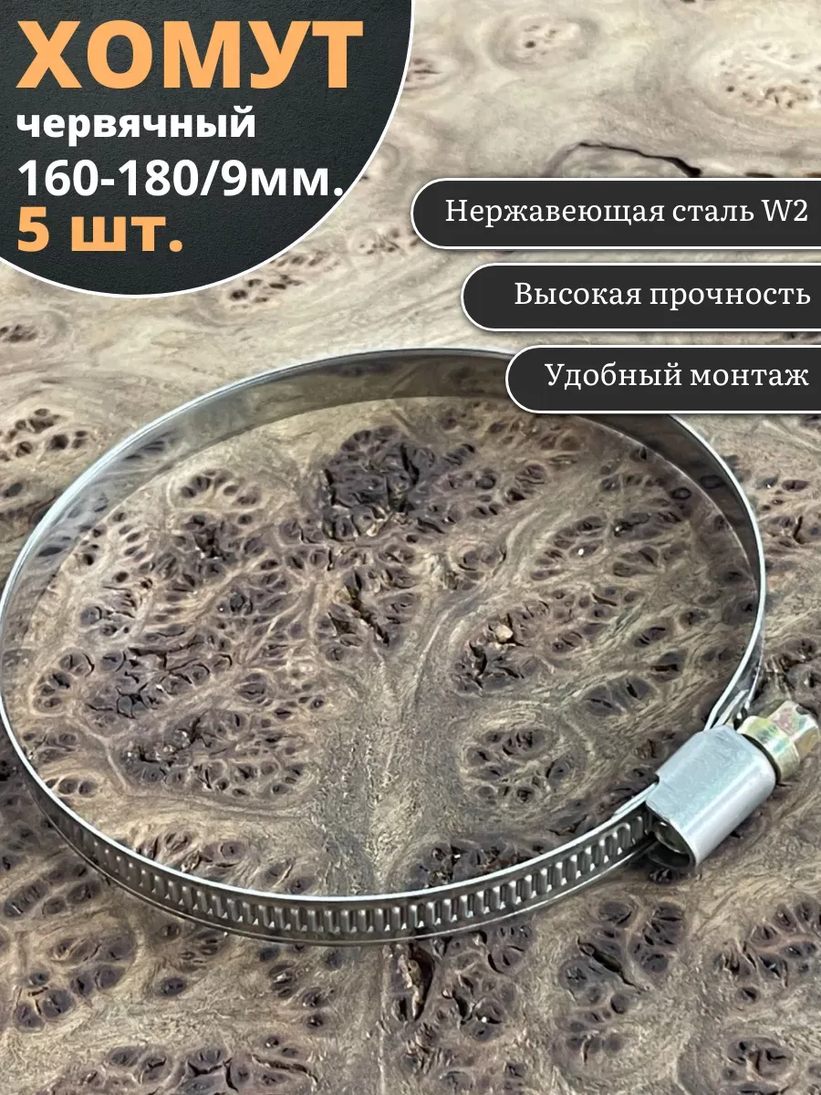 Хомут стяжка червячный 160-180/9 W2 нержавейка, 5 шт.
