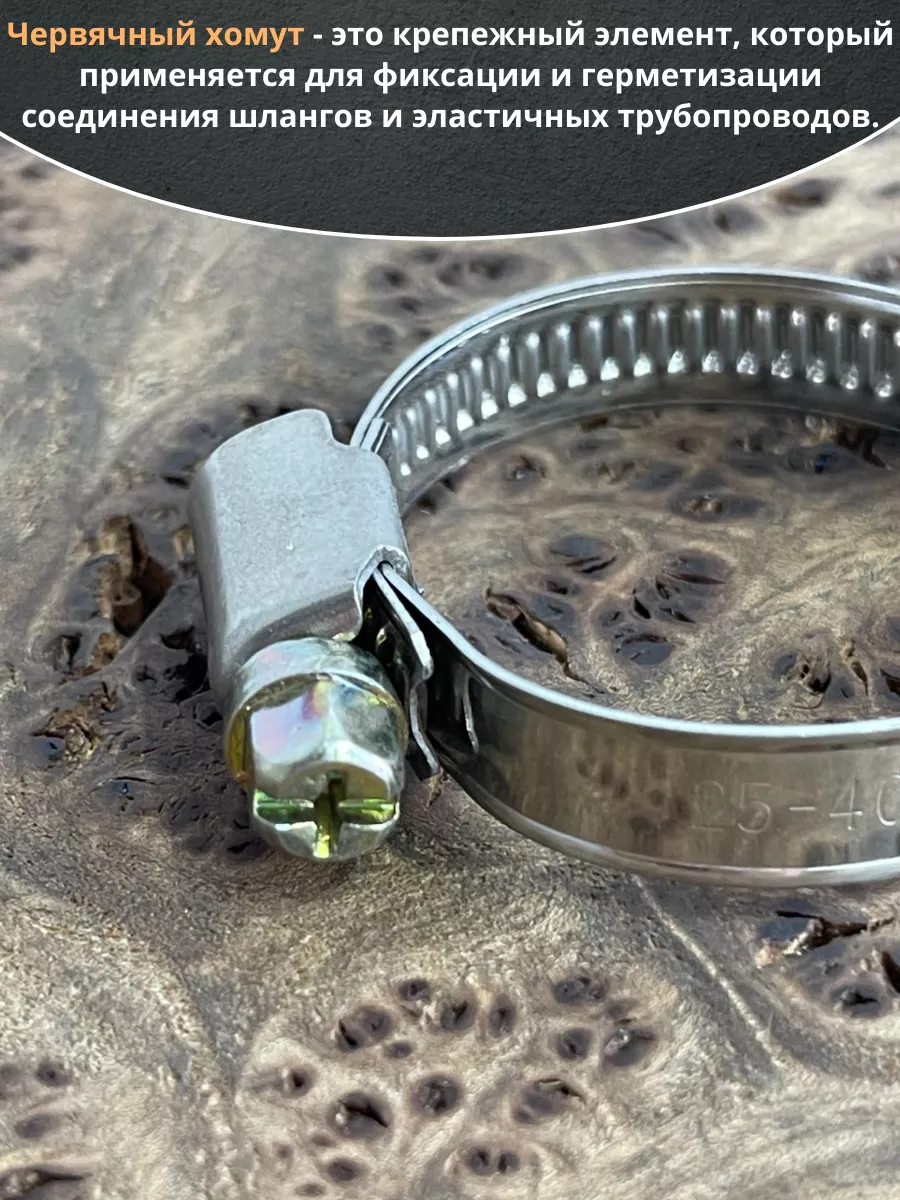 Хомут червячный используется для соединения, крепления или фиксации жестких и гибких трубопроводов, шлангов и патрубков. Изготавливается из стали в виде ленты со специальным замком. Одна половина ленты гладкая, а вторая рифленая, что гарантирует надежную фиксацию. Срок службы данного изделия напрямую зависит от правильного выбора соединения и степени подвижности.