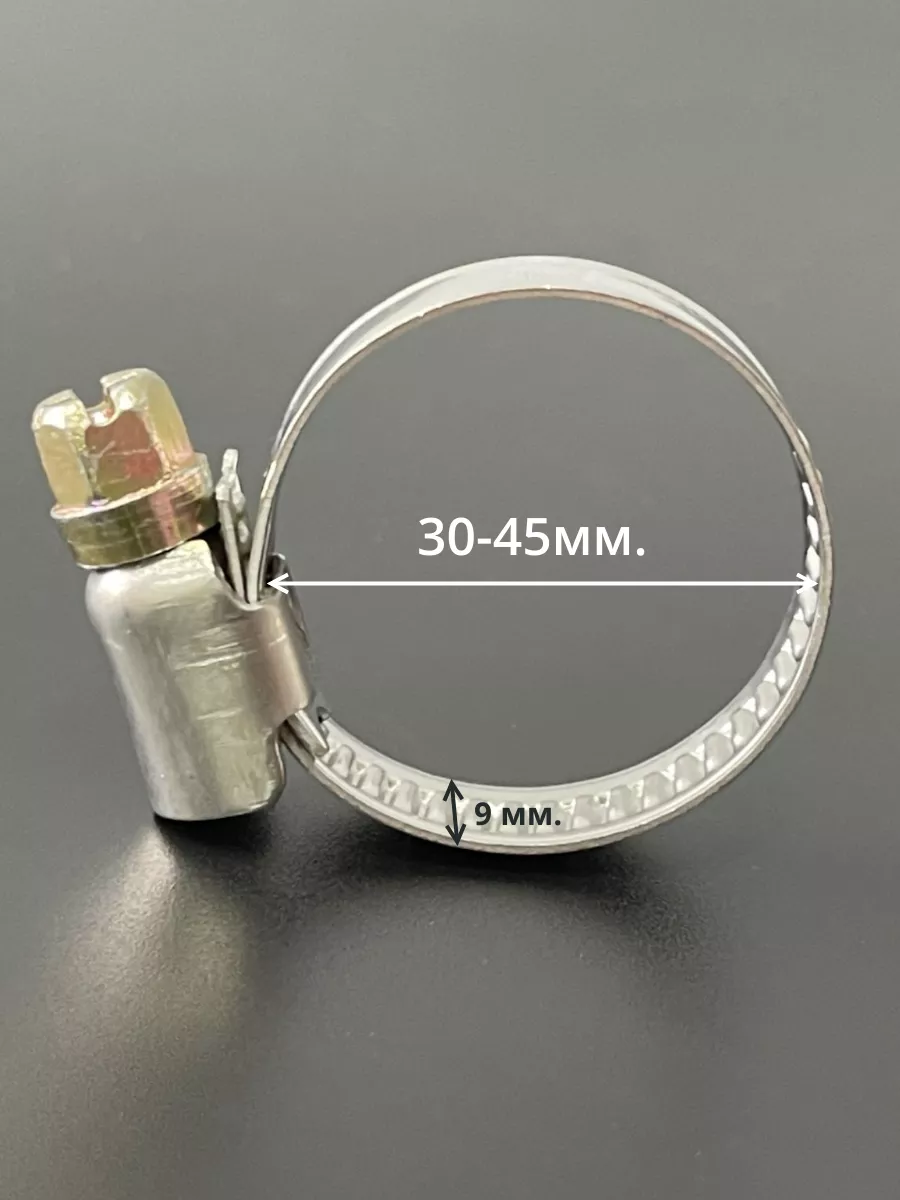 Хомут стяжка червячный 30-45/9 W2 нержавейка, 5 шт.