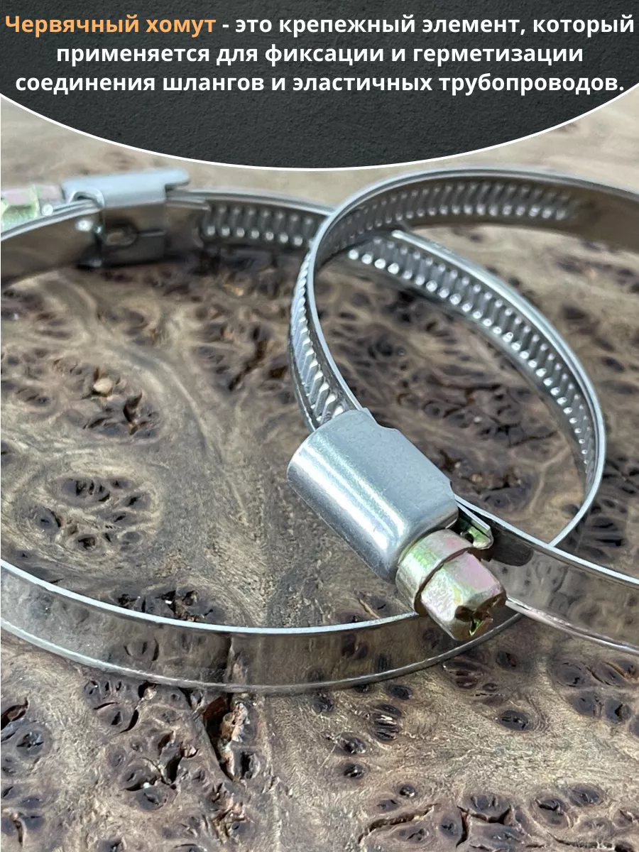 Хомут червячный используется для соединения, крепления или фиксации жестких и гибких трубопроводов, шлангов и патрубков. Изготавливается из стали в виде ленты со специальным замком. Одна половина ленты гладкая, а вторая рифленая, что гарантирует надежную фиксацию. Срок службы данного изделия напрямую зависит от правильного выбора соединения и степени подвижности.