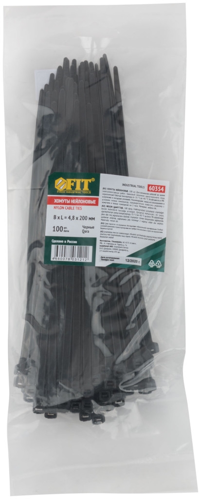 | Хомуты нейлоновые черные для проводов 200х4,8 мм 100 шт. | 60354 | 1 шт. |