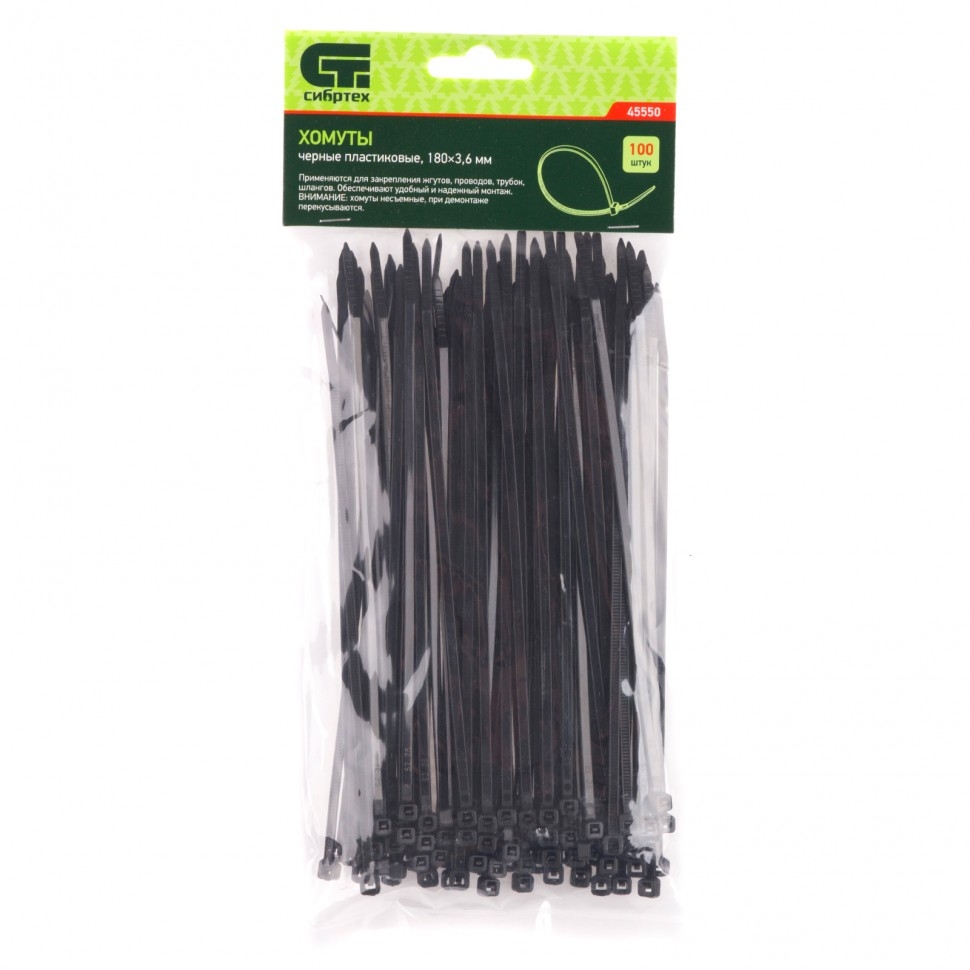 | Хомуты пластиковые черные 180х3,6 мм 100 шт. Сибртех | 45550 | 1 шт. |