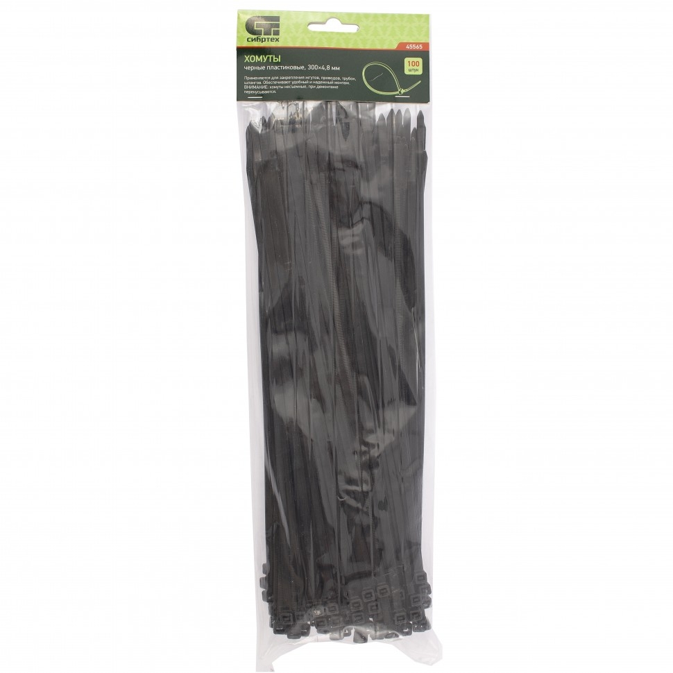 | Хомуты пластиковые черные 300х4,8 мм 100 шт. Сибртех | 45565 | 1 шт. |