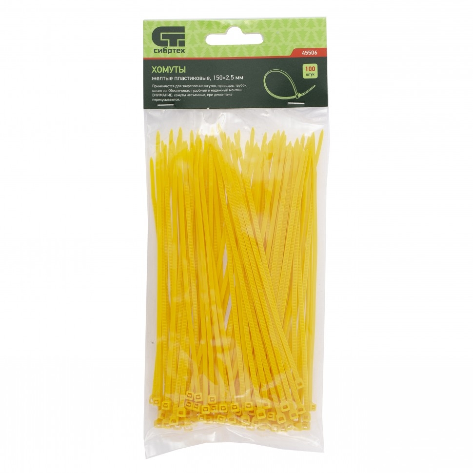 Хомуты пластиковые желтые 150х2,5 мм 100 шт. Сибртех
