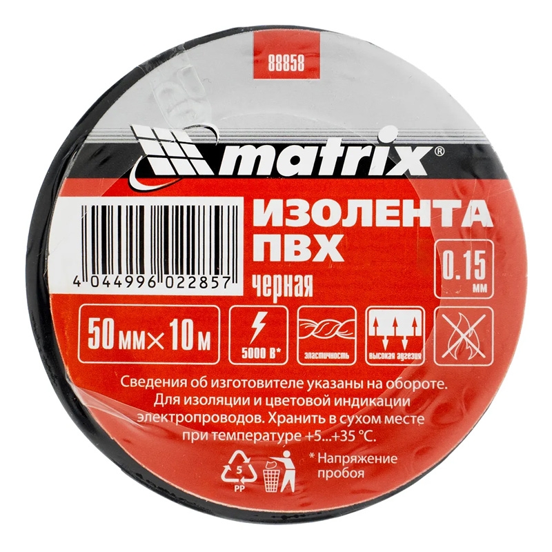 Изолента ПВХ 50 мм х 10 м черная, Matrix