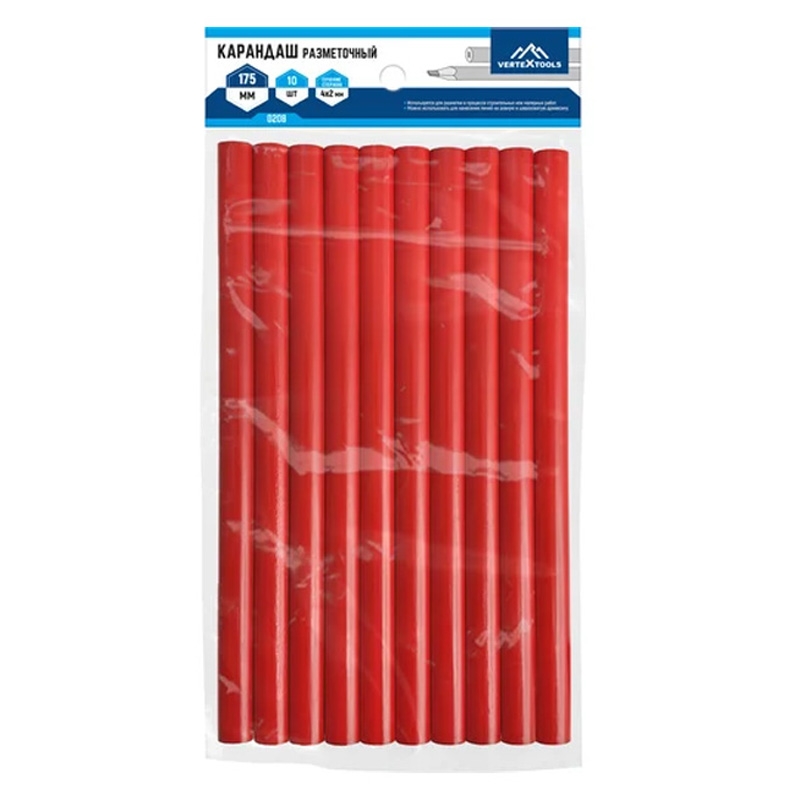 Графитовый строительный карандаш VERTEXTOOLS 0208 — это инструмент, который используется при проведении строительных и малярных работ для нанесения разметочных линий. Он удобен для создания чётких и видимых меток на различных поверхностях, что помогает в процессе выполнения задач, требующих точности и аккуратности.