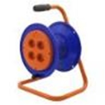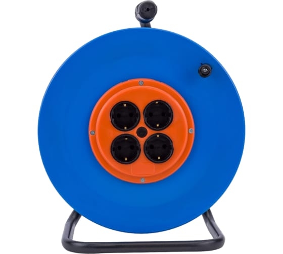 Катушка металлическая без провода с 4 розетками. Катушка - это удобное приспособление для защиты длинного провода от спутывания, его хранения и транспортировки. Изделие оснащено устойчивой металлической опорой, практичной ручкой для переноски и устройством для быстрого сматывания шнура питания удлинителя.
