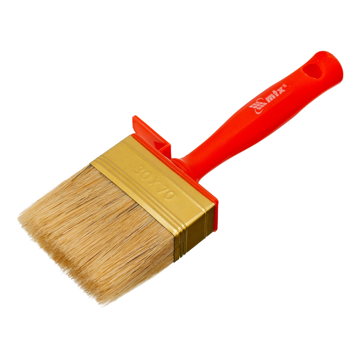 Кисть-ракля MTX 84120 толщиной 30 мм и шириной 70 мм, с натуральной щетиной, пластмассовыми корпусом и ручкой, используется для малярных работ на участках большой площади, поэтому удобна для обработки стен, потолков и фасадов. Натуральная щетина устойчива к химическому воздействию, поэтому не деформируется и сохраняет упругость при работе с ЛКМ на водной основе, грунтовками, масляными красками и клеящими составами.