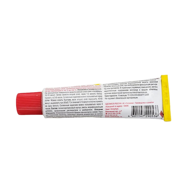 Подходит для склеивания в различных сочетаниях резины, кожи, металла, бетона, керамики, дерева, а также оснований из ткани и полимеров.