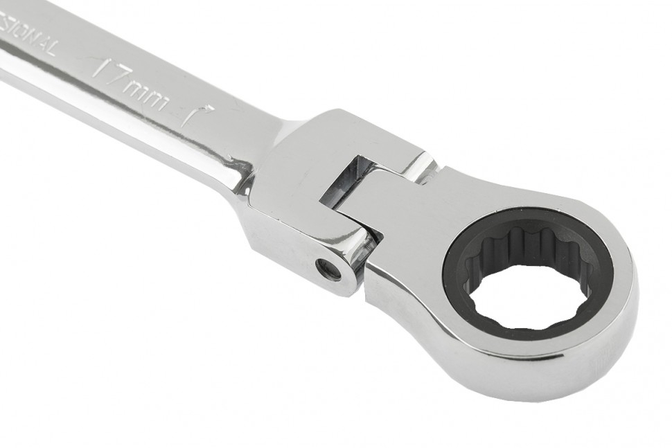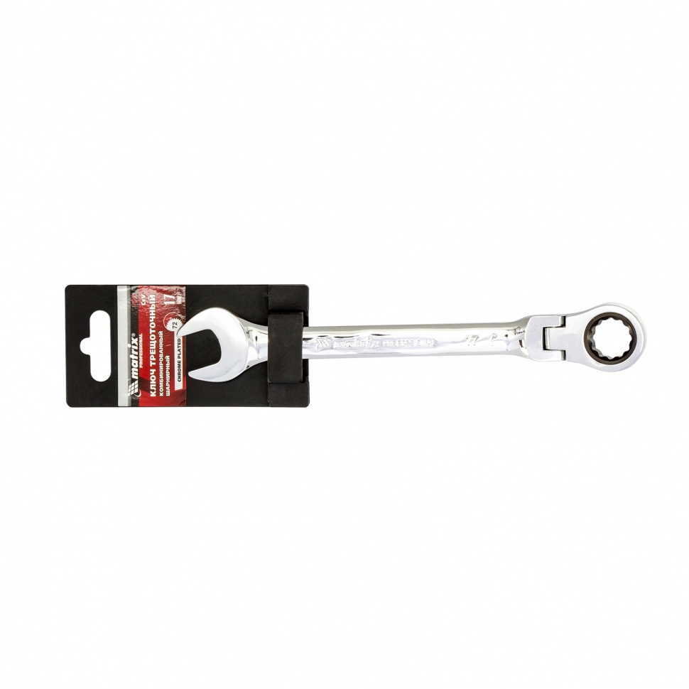 Ключ комбинированный трещоточный шарнирный зеркальный хром 17 мм CrV Matrix