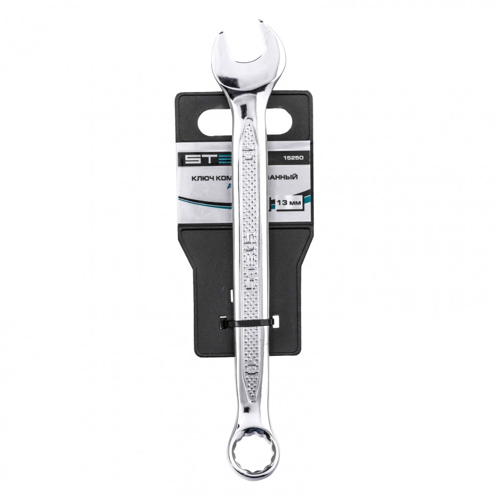 Комбинированный ключ Stels 15250 из стали CrV, 13 мм, антислип, позволяет откручивать и закручивать резьбовые соединения. Универсален в применении, т.к. имеет кольцевую и рожковую головки. 12-гранный профиль накидного зева обеспечивает увеличенную площадь контакта с поверхностью крепежа, что минимизирует вероятность его деформации. Ключ будет полезен в автомастерской, для монтажа и демонтажа оборудования, пригодится для работ по дому.