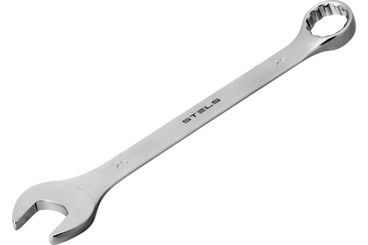 Ключ комбинированный матовый хром 26 мм CrV Stels