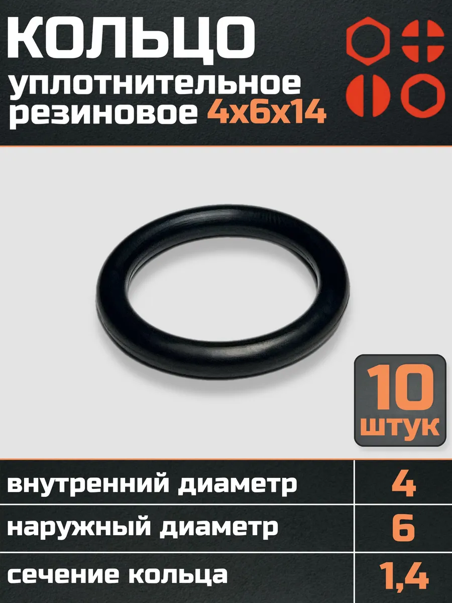 Кольцо уплотнительное 4 мм ( 4х6х14 ) резиновое, 10 шт.