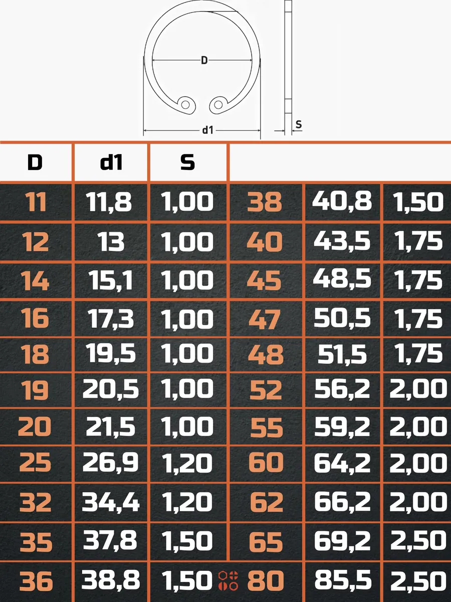 Кольцо внутреннее стопорное D11 DIN 472, 10 шт.