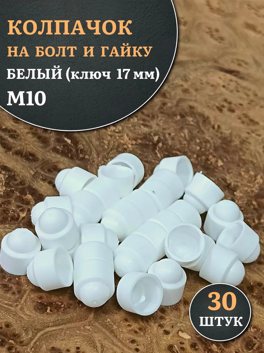 Колпачок на болт и гайку белый M10 (ключ 17 мм), 30 шт.