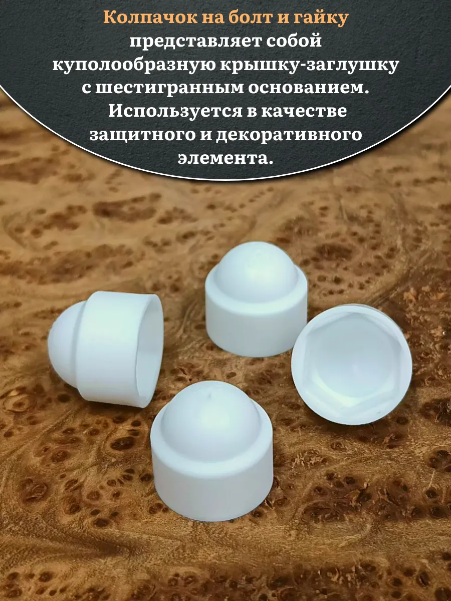 Колпачок на болт и гайку белый M6 (ключ 10 мм), 20 шт.