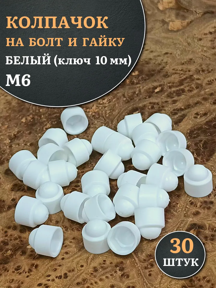 Колпачок на болт и гайку белый M6 (ключ 10 мм), 30 шт.