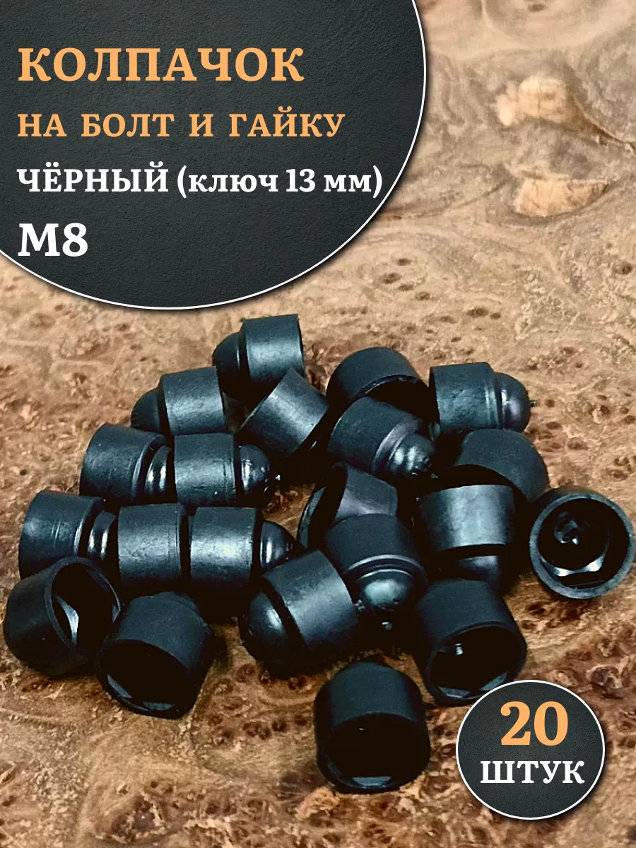 Колпачок на болт и гайку черный M8 (ключ 13 мм), 20 шт.