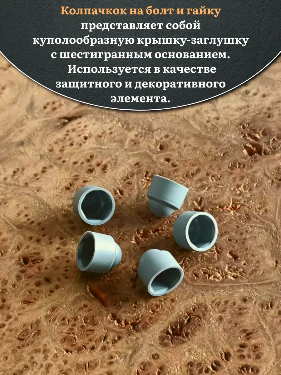 Колпачок на болт и гайку серый M5 (ключ 8 мм), 20 шт.