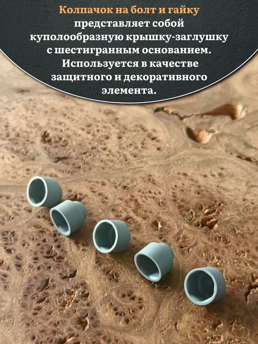 Колпачок на болт и гайку серый M8 (ключ 13 мм), 10 шт.