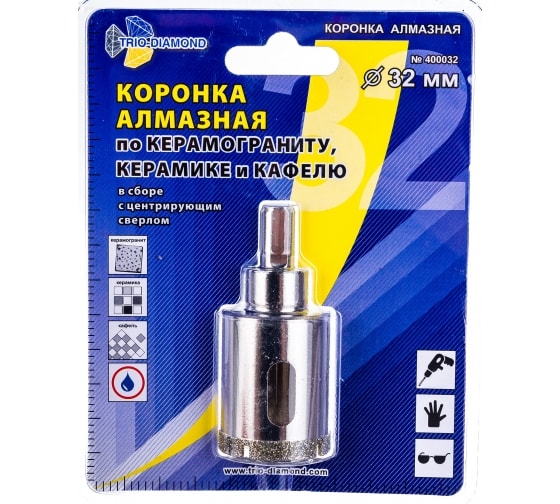 Коронка по керамике и кафелю, алмазная с центрир.сверлом 32 мм