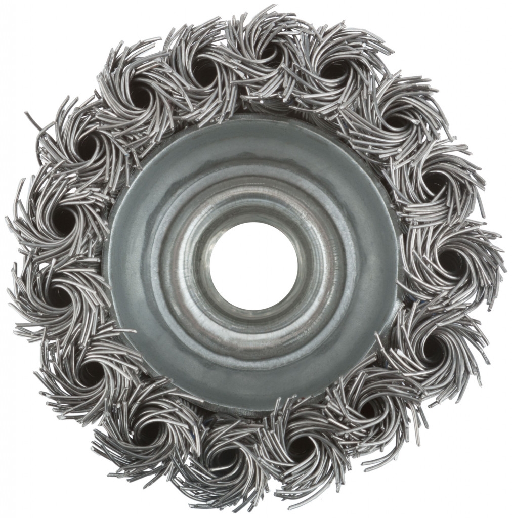 Тип «чашка». Для УШМ. Для очистки поверхностей от краски и ржавчины. Гайка М14. Витая проволока. Материал: инструментальная сталь. Упаковка: картонная коробка.