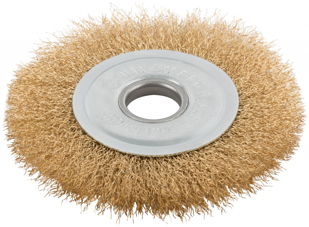 Корщетка дисковая прямая, посадочн.д.22,2мм, латунир.волнистая проволока, 150 мм 39026 1 шт.