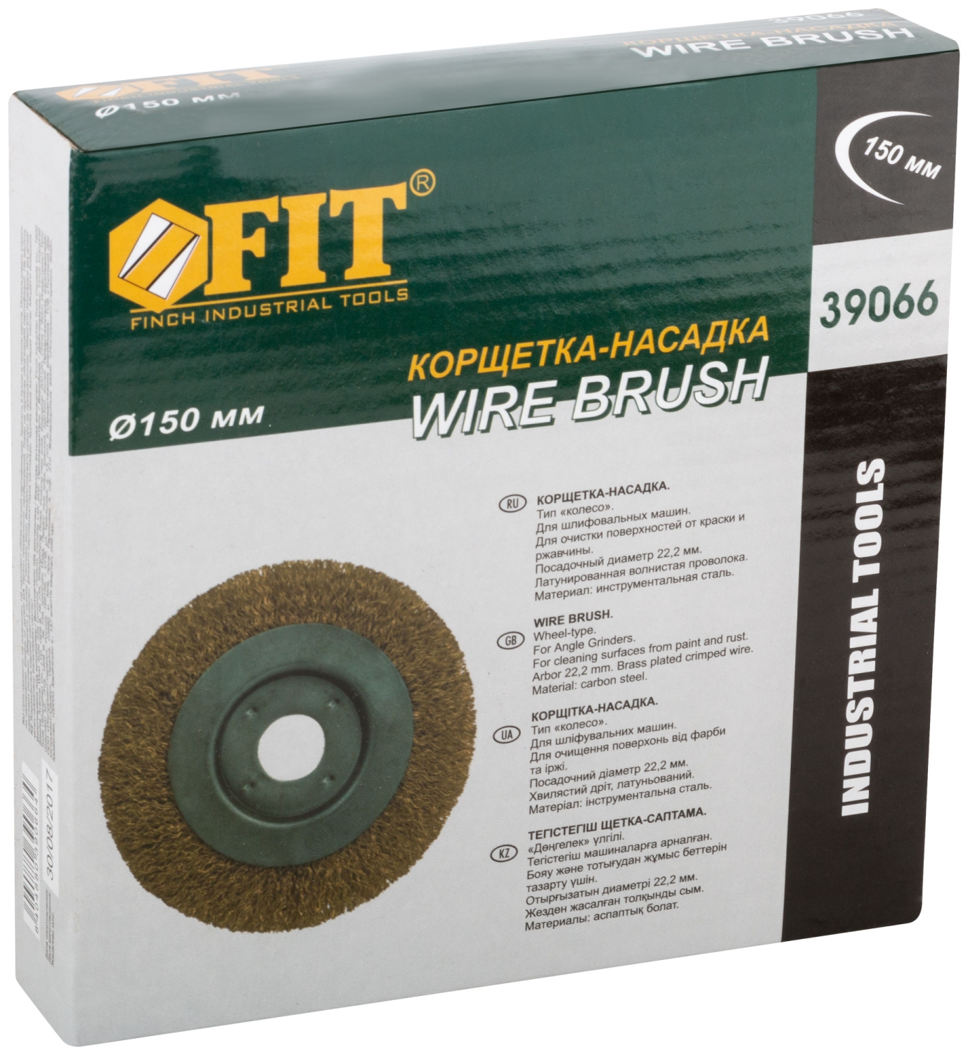 Тип «колесо». Для УШМ. Посадочный диаметр 22,2 мм. Материал: стальная латунированная волнистая проволока. Упаковка: картонная коробка. Корщетка-колесо FIT IT 39066 является сменным элементом для угловых шлифовальных машин. Применяется для зачистки от лака, краски и ржавчины различных поверхностей и изделий. Рабочая часть состоит из стальной волнистой проволоки с латунным покрытием. Посадочное отверстие — 22.2 мм.