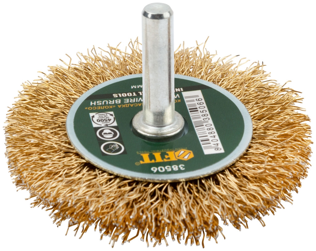 Корщетка-колесо, со штифтом, стальн.латунир.волнист.проволока