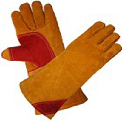 Подкладка плотная, 100% хлопковая ткань. Дополнительный термоизолирующий слой флиса на тыльной, ладонной части и пальцах. Усиление швов спилковыми вставками и прошиты огнеупорной нитью KEVLAR. Длина краги 35см. Цвет спилка оранжевый/красный. Краги из спилка КРС сорта АВ, пятипалые.