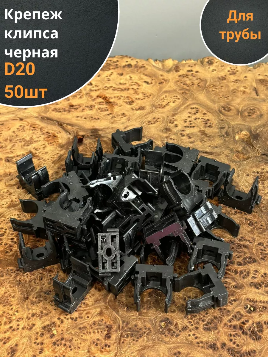 Крепеж клипса для трубы d 20 черная , 50 шт.