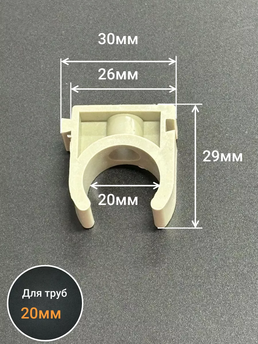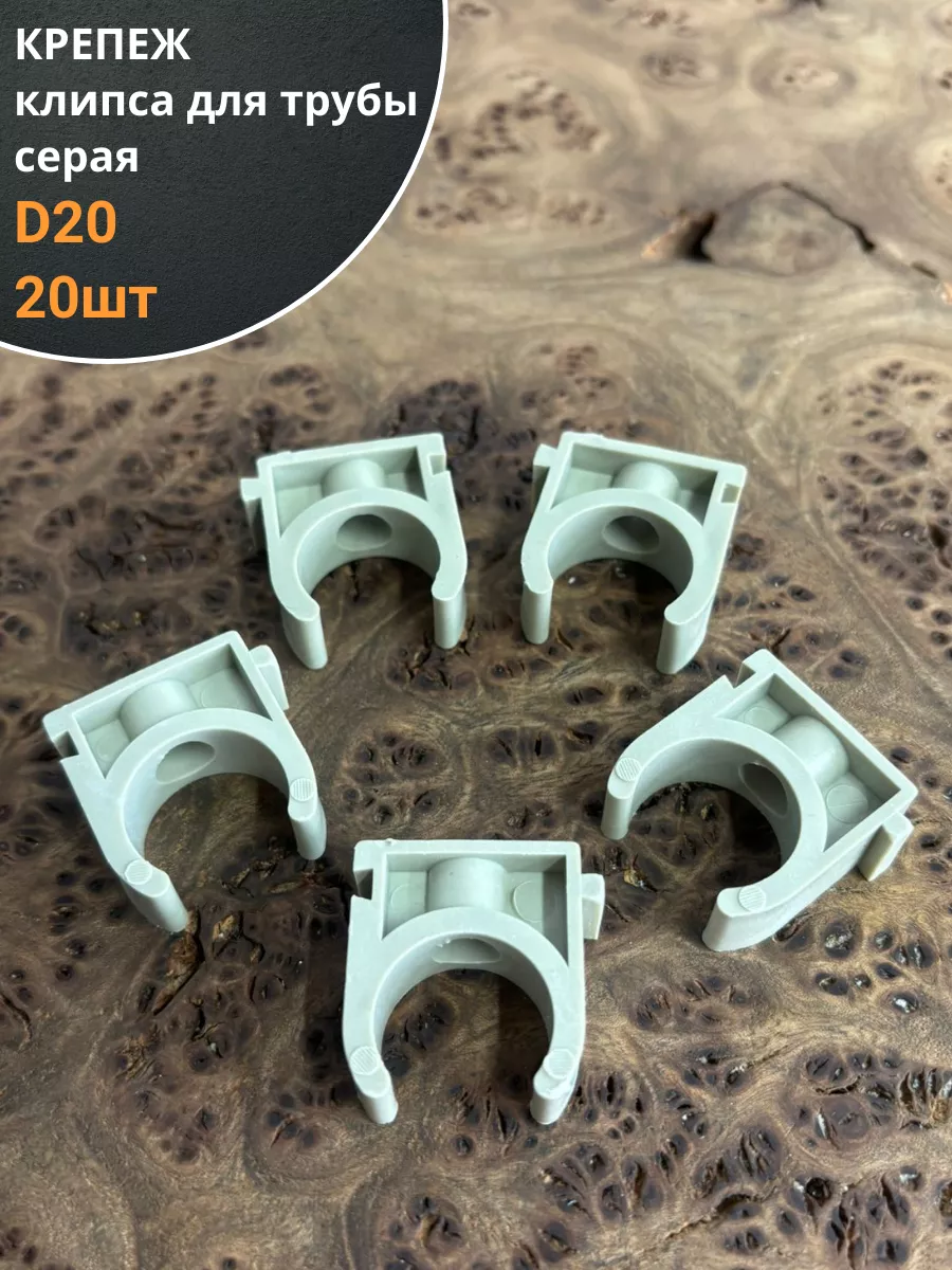 Крепеж клипса для трубы d 20 серая, 20 шт.