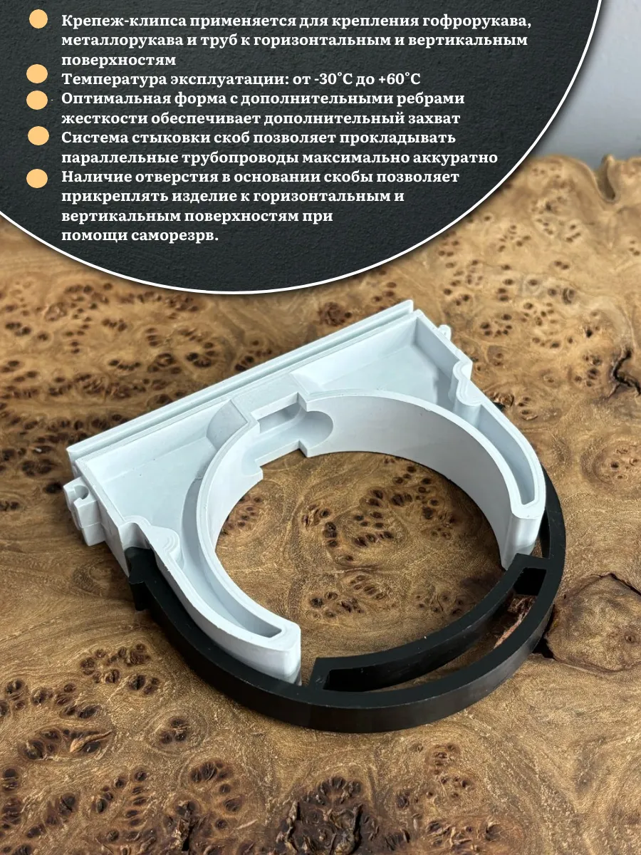 Крепеж клипса для трубы гофры с фиксатором d 50 мм, 10 шт.