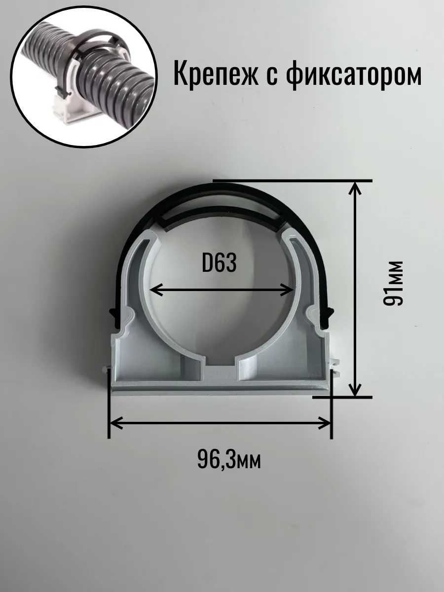 Крепеж клипса для трубы гофры с фиксатором d 63 мм, 4 шт.