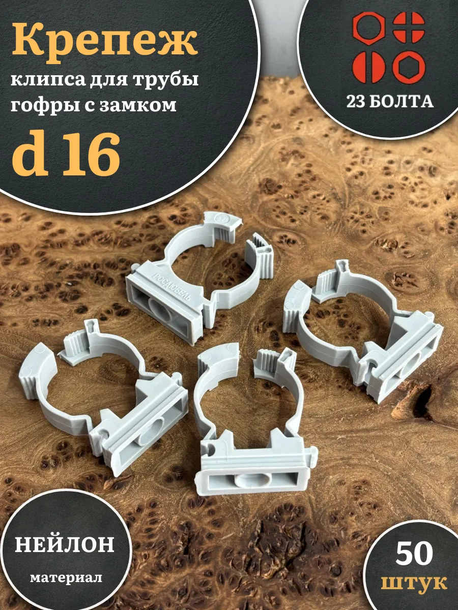 Крепеж клипса для трубы гофры с замком d 16 мм, 50 шт.