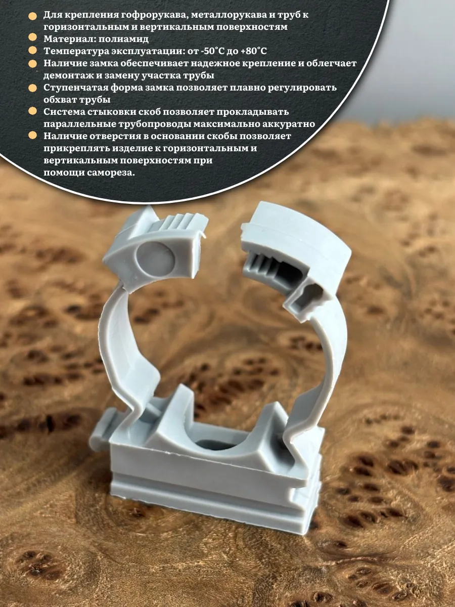 | Крепеж клипса для трубы гофры с замком d 20 мм, 20 шт. | 17-1210ф20 | 1 шт. |