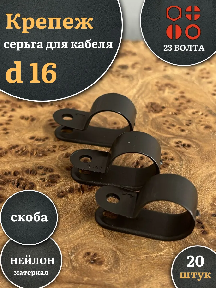 Крепеж серьга для кабеля (скоба) d 16 черная, 20 шт.