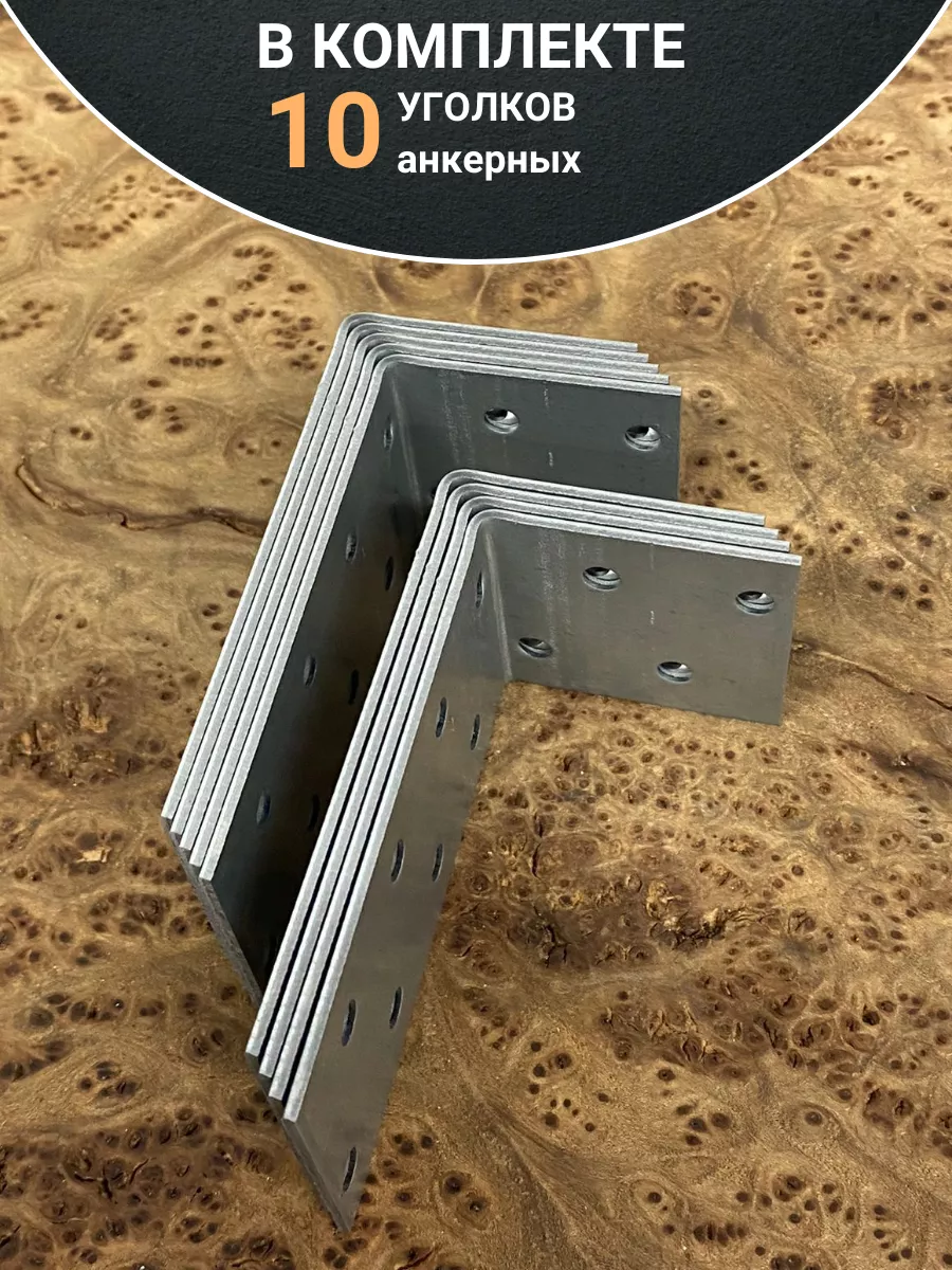 Крепежный анкерный уголок 40х80х40 ОЦ, 10 шт.