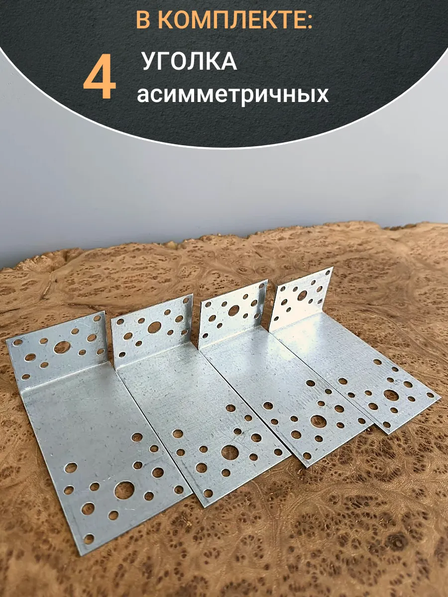 Крепежный ассиметричный уголок 120х40х60 ОЦ, 4 шт.