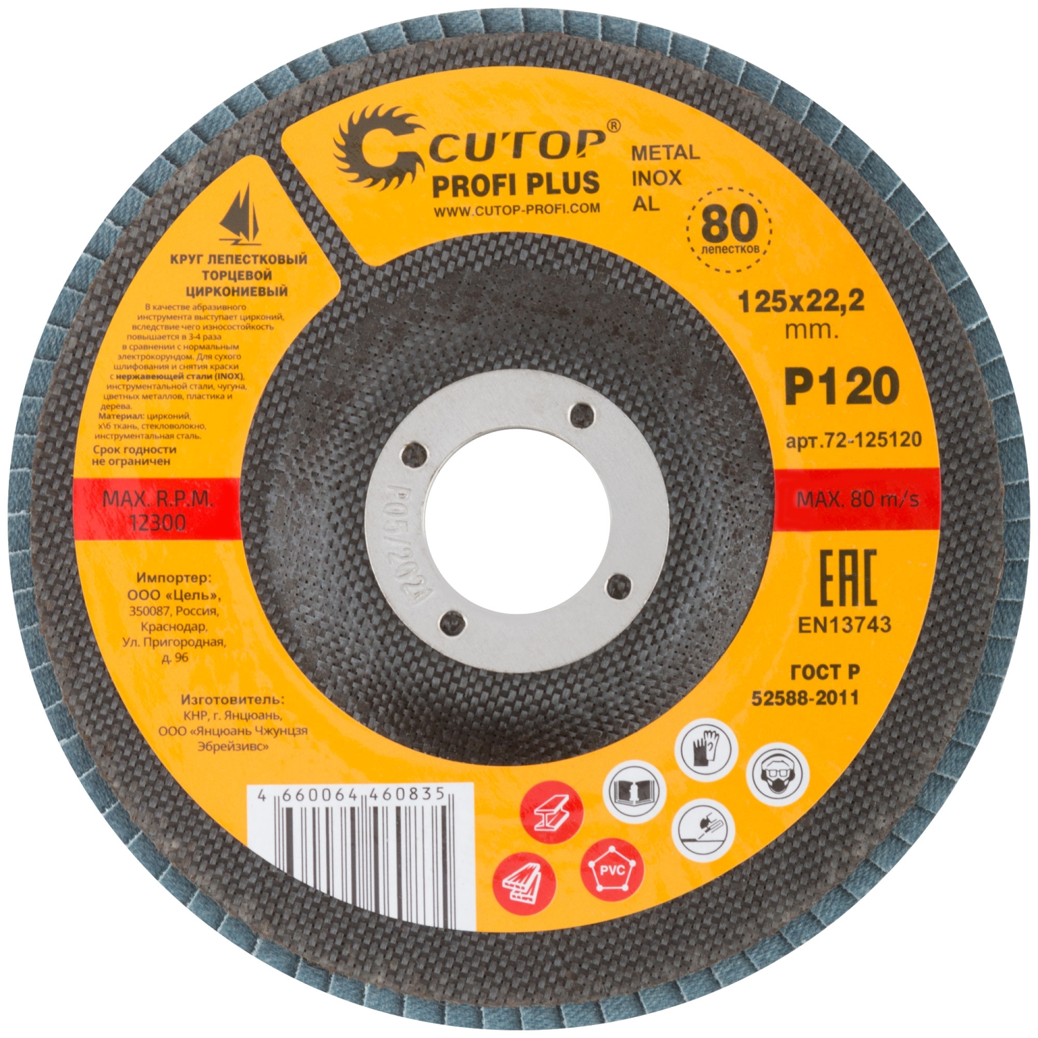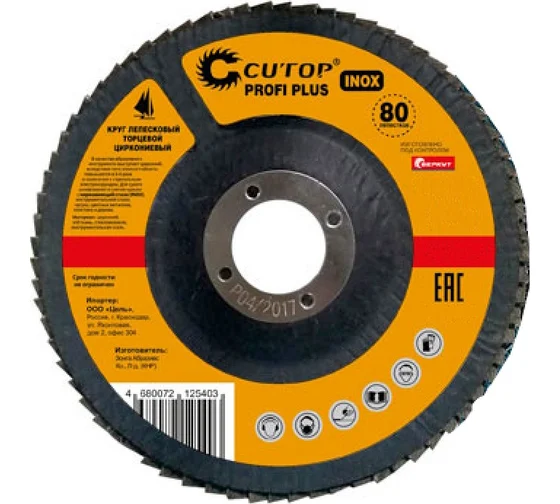 Круг лепестковый торцевой циркониевый Cutop Profi Plus (80 лепестков) 125х22,2 мм Р120 (CUTOP)